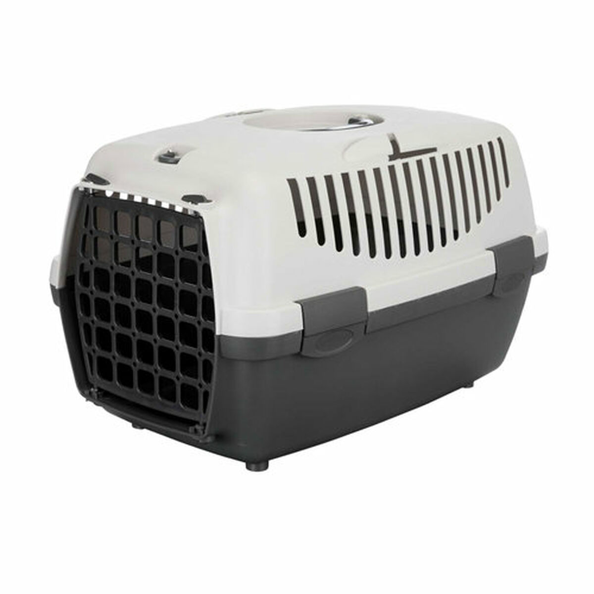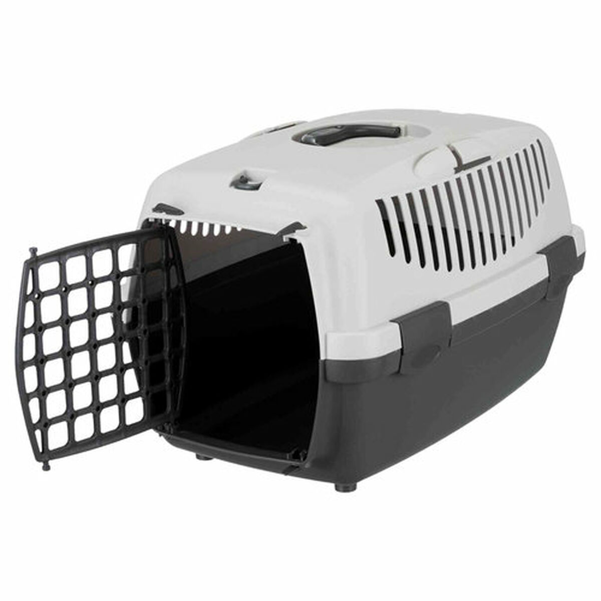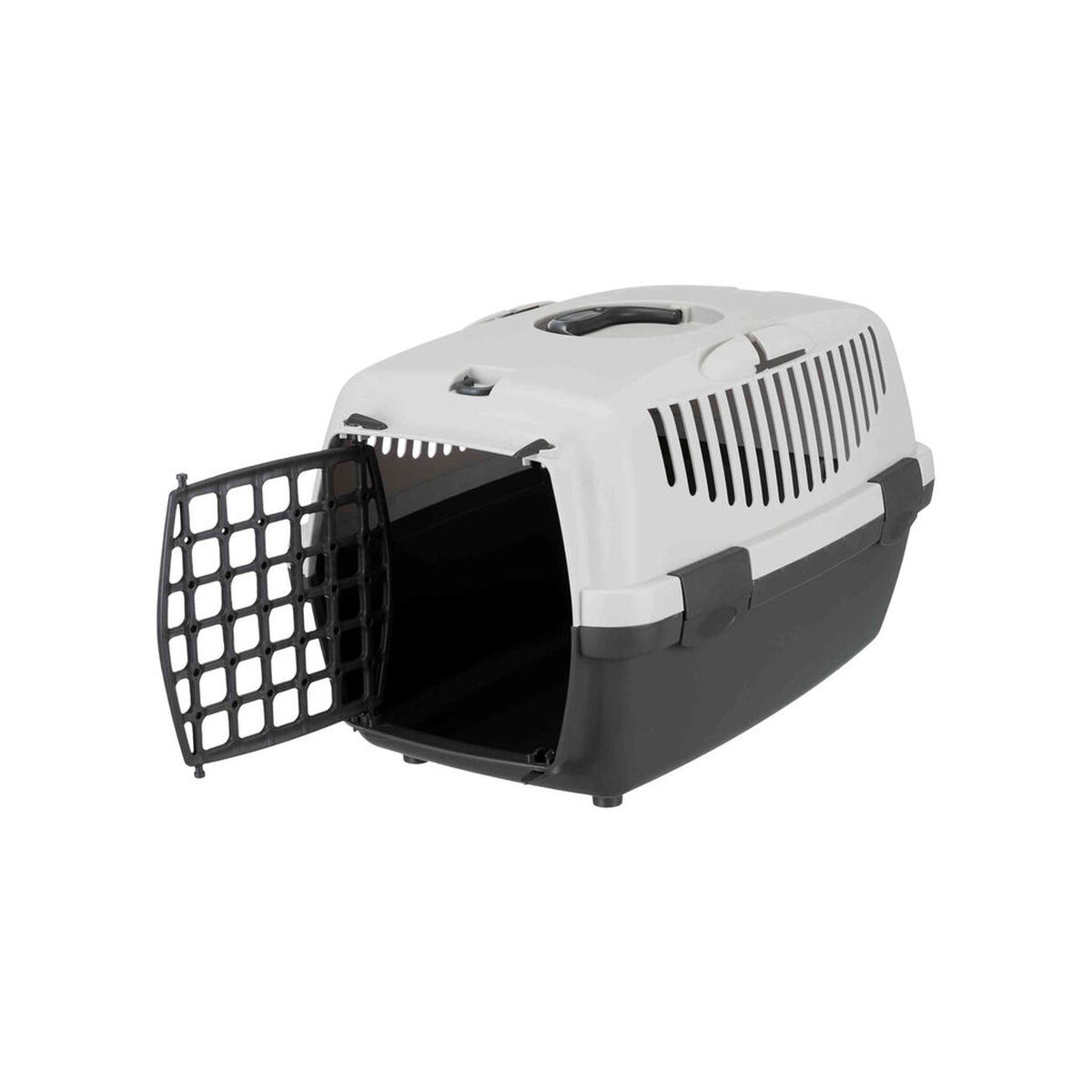 El transportín Capri de la marca Trixie es un accesorio diseñado para facilitar el transporte seguro y cómodo de perros y gatos de pequeño tamaño, con un peso máximo recomendado de hasta 6 kg. Fabricado en plástico resistente, este transportín presenta un diseño funcional y ligero, con dimensiones de 32 x 31 x 48 cm que lo hacen idóneo para mascotas de talla XS. Cuenta con una asa integrada para un transporte sencillo y cómodo, mientras que sus ranuras de ventilación aseguran una correcta circulación del aire en el interior, garantizando el bienestar del animal durante el viaje. Su acabado en tonos gris claro y gris oscuro aporta un aspecto sobrio y discreto, que facilita su integración en distintas situaciones y entornos. Además, dispone de un único compartimento que ofrece un espacio adecuado y seguro para la mascota, sin elementos innecesarios que compliquen su uso o limpieza. Este transportín es adecuado tanto para viajes cortos como para visitas al veterinario o desplazamientos cotidianos en los que se requiere un contenedor seguro y fiable para pequeños perros y gatos. La simplicidad, funcionalidad y materiales utilizados hacen de este transportín Capri una opción práctica y duradera para quienes buscan una solución básica pero efectiva para el transporte de mascotas pequeñas.